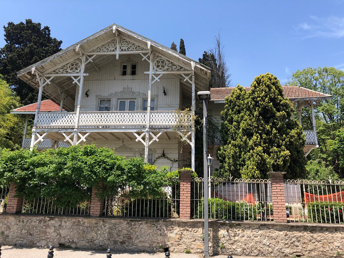 Gittigimizde kapalıydı bahcesi arkadaki park güzel. Evin balkonları ve çatı işciligi çok güzel. Eskiden ustalık sanatcılık gibi birşeydi sanırım