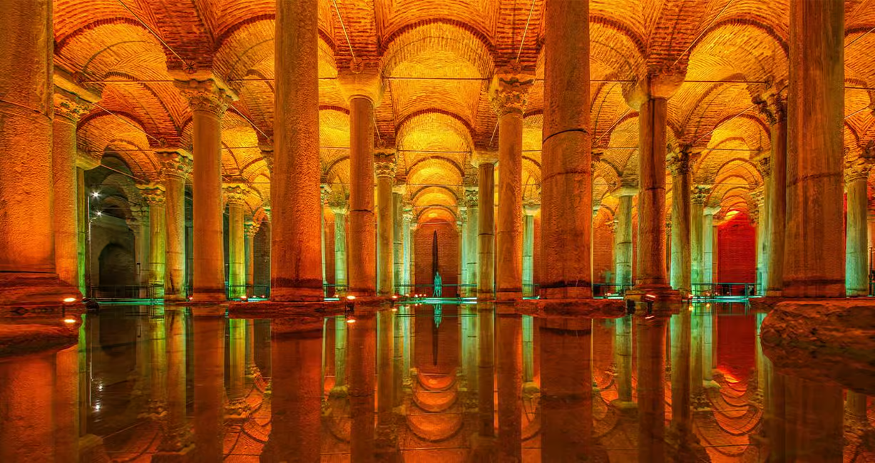 As you step down the stairs into the subterranean world, you'll be greeted by hundreds of columns that seem to stand on the water and a unique architecture. While wandering through the dimly lit corridors of this ancient structure, you will admire the architecture and decorations, including the legendary Medusa heads from Greek mythology.
