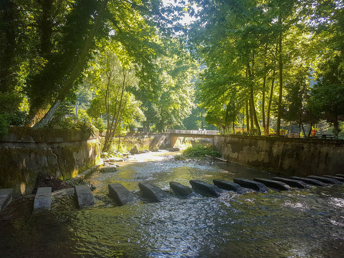 Dere boyunca patikada yürüyerek şelaleye ve tarihi maden tünellerine ulaşın