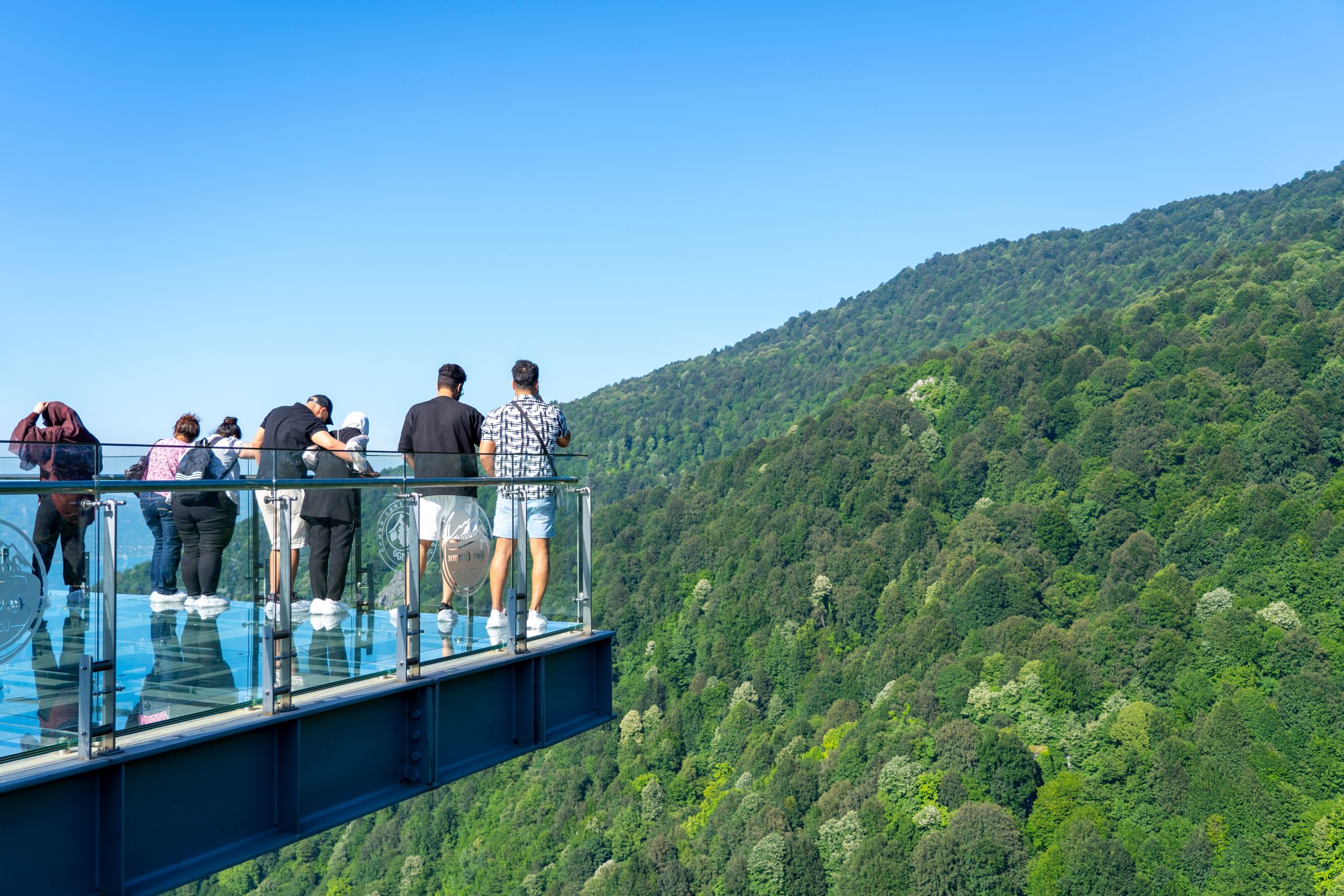 O muhteşem kahvaltının ardından enerjinizi topladıysanız, şimdi Maşukiye'nin geleneksel yüzünden modern ve heyecan verici tarafına geçme zamanı. Rotamız, size kendinizi adeta bulutların üzerinde hissettirecek olan Ayrı Gezegen Cam Teras. Burası, Marmara Bölgesi'nin ilk cam tabanlı seyir terası ve 460 metrekarelik alanıyla Türkiye'nin en büyüğü olma unvanını taşıyor.