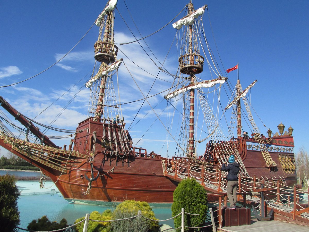 Masal Şatosu'nun büyüsünden çıkıp parkın ortasındaki yapay gölete doğru yürüdüğünüzde, sizi bir başka sürpriz bekliyor: tüm heybetiyle demirlemiş dev bir Korsan Gemisi! Kalyon Gemisi olarak da bilinen bu yapı, özellikle çocukların ve macera ruhunu kaybetmeyen yetişkinlerin favori noktalarından biri.