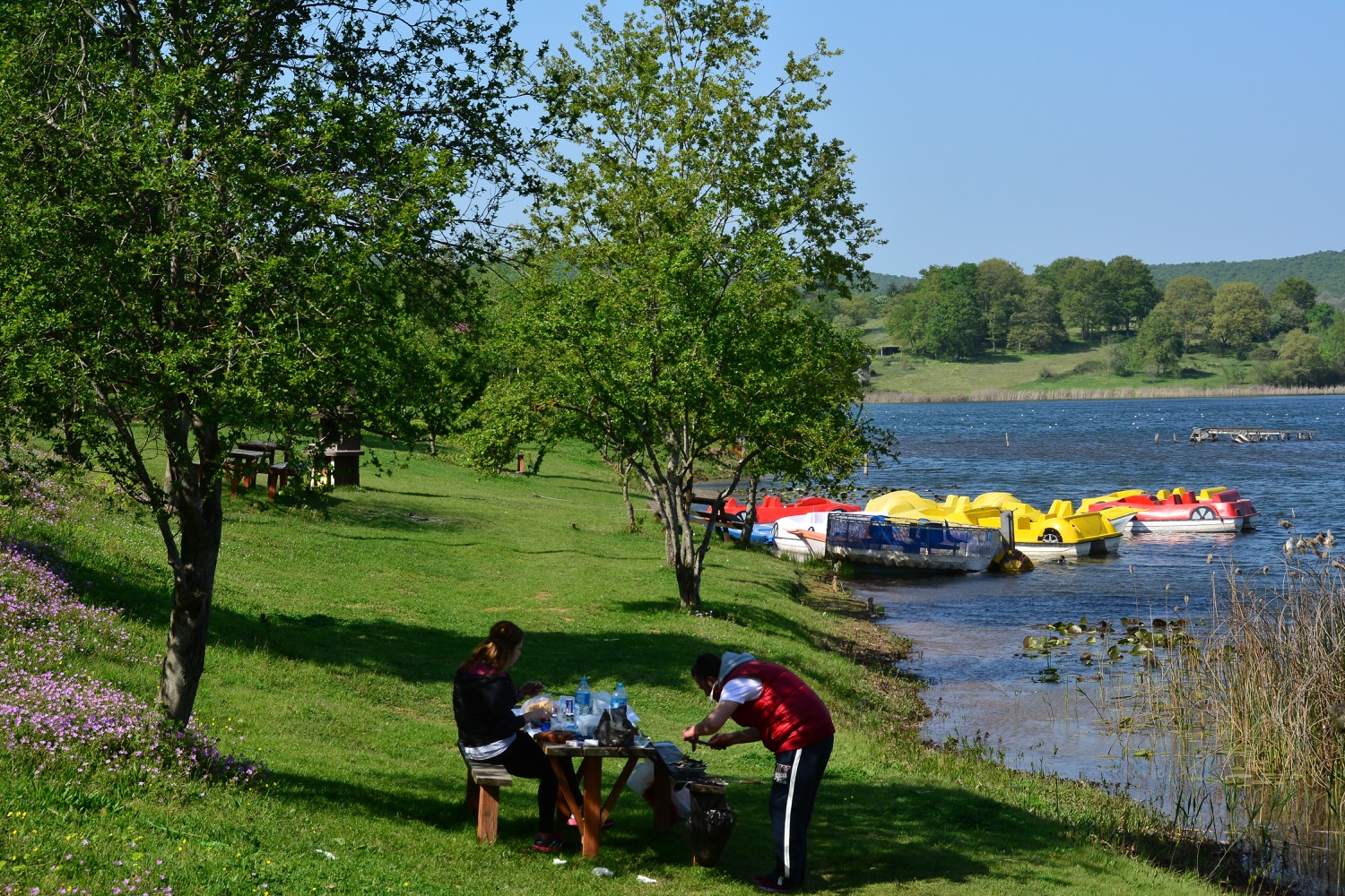 Göl çevresindeki ormanlık alanda piknik veya mangal yapın