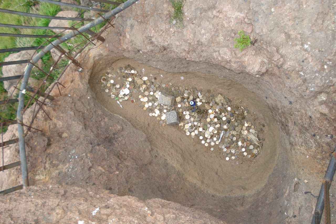Şeytan'ın ayak izi olduğuna inanılan çukura demir para atın