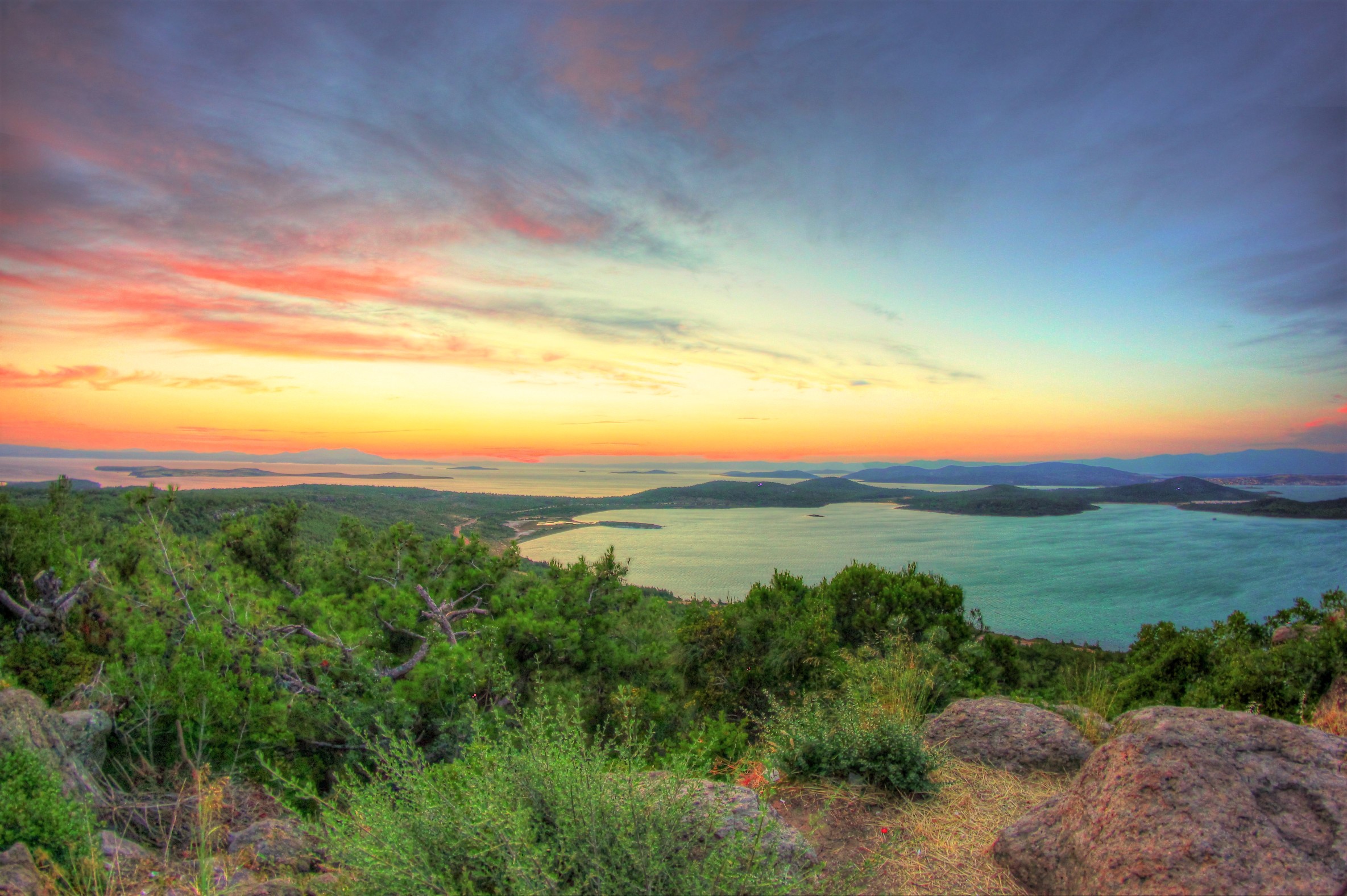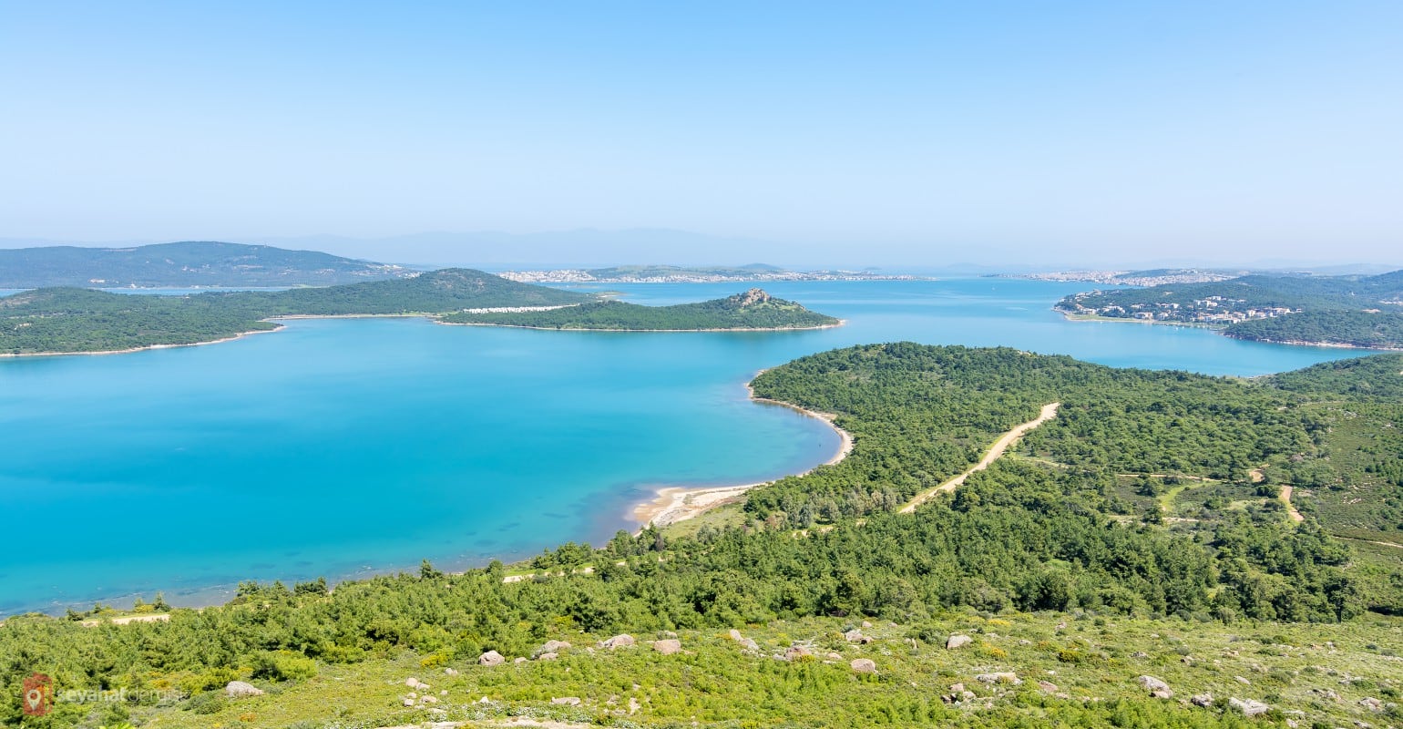 Volkanik bir tepeden Ayvalık adalarının panoramik manzarasını seyredin