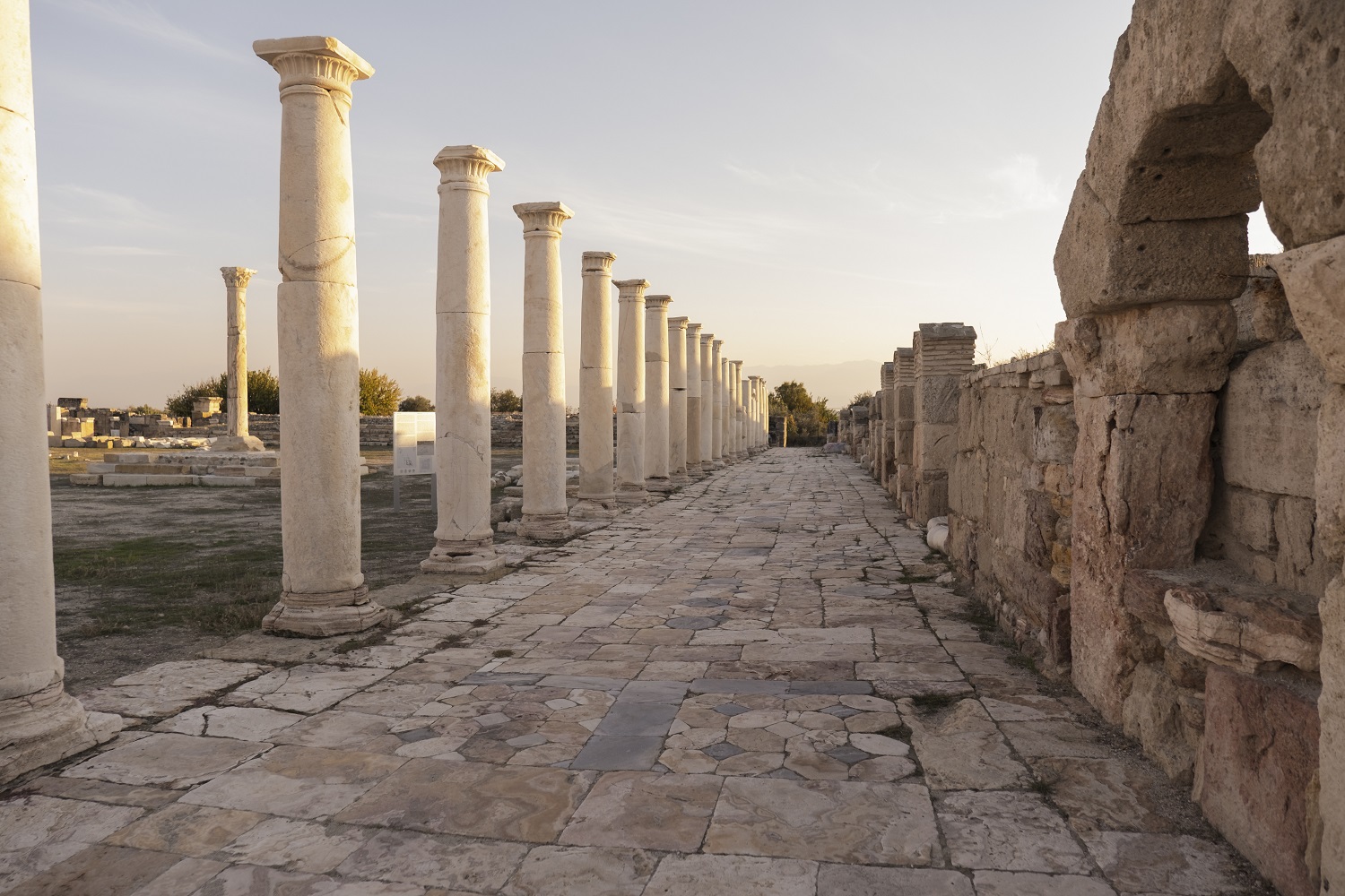 Kente girdiğinizde sizi ilk karşılayacak yerlerden biri, bir zamanlar hayatın aktığı Sütunlu Cadde. Gözlerinizi kapatıp bir anlığına hayal edin: caddenin iki yanına dizilmiş dükkanlar (tabernalar) , alışveriş yapan Romalılar, sohbet eden tüccarlar... Burası kentin ticari ve sosyal kalbiydi. Kazı çalışmaları ilk olarak burada başlamış ve caddenin görkemli bir bölümü gün yüzüne çıkarılmış.